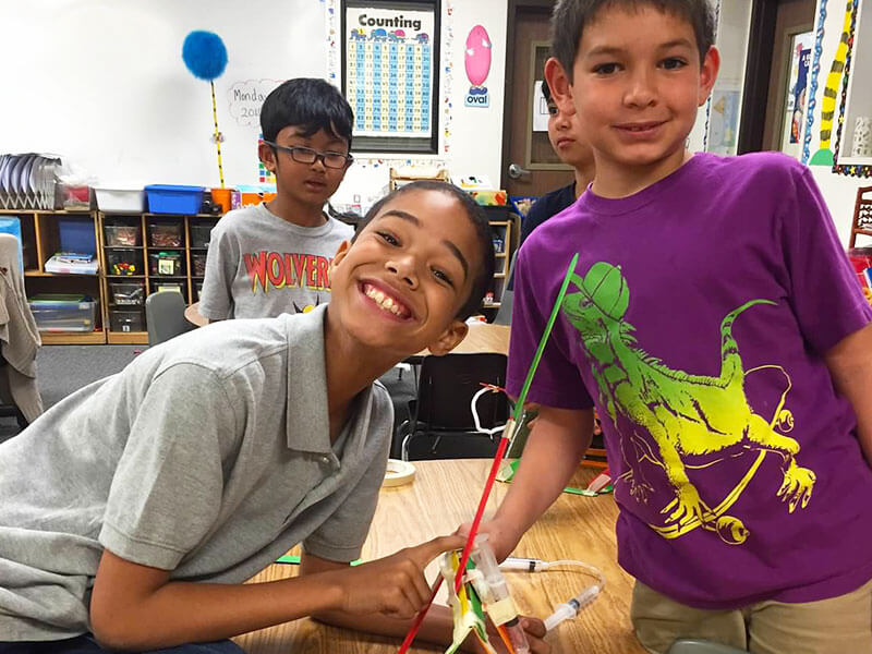 This week, our Early Engineers made a model pneumatic crane by using Popsicle sticks, syringes, and plastic tubing to make a compressed air pump system. By pushing down the syringe's plunger, we were able to pump air through the system and raise and lower the arm of the crane!