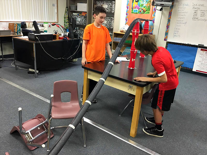 Instead of people and full sized water slides, our Early Engineers built their slides this week with ping pong balls, marbles, plastic cups, tape, and pipe insulation. we were able to see the laws of motion, inertia, and momentum in action as our crazy courses ran throughout the classroom from desks and up and all around chairs and other obstacles. Learning about physics has never been so much fun!